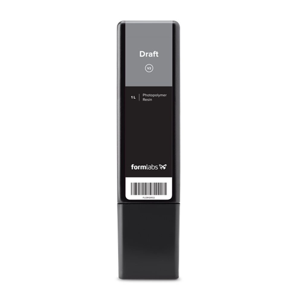 Draft Resin prints up to four times faster than Formlabs standard materials, making it ideal for initial prototypes and rapid iterations to help bring products to market faster. Parts printed with Draft Resin exhibit a smooth grey finish and high accuracy.Use 200 micron settings for fast print speeds, or use 100 micron settings for models with finer details.