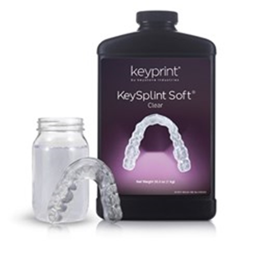 Utilizing unique patent-pending technologies, Keystone Industries has developed a one-of-a-kind 3D printing resin for the fabrication of flexible dental splints, nightguards, and bleaching trays. This DLP-optimized resin is an exceptional printing material, that combines the strength needed to protect teeth against disorders like bruxism with added flexibility for better patient comfort. KeySplint Soft is also easily cleaned by the patient.