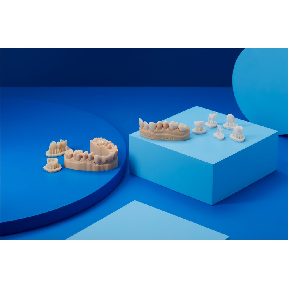 Temporary CB Resin is a tooth-colored resin for 3D printing of temporary crown and bridge restorations, inlays, onlays, and veneers. Indicated for up to seven-unit bridges and available in four VITA* shades, this material provides excellent marginal adaptation, strength, and aesthetics. Use traditional temporary cement to fix restorations produced with Temporary CB Resin. Restorations made with Temporary CB Resin may remain up to 12 months in the mouth. Digitally created restorations enable a quick, collaborative process between the dentist, technicians, and patients. A Stainless Steel Build Platform is required when printing with Temporary CB Resin for optimal aesthetics and performance. We recommend purchasing the Temporary CB Resin Starter Pack if you do not currently have a Stainless Steel Build Platform.