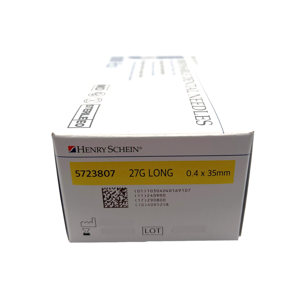 Henry Schein Standard Dental Needle - Sterile - 27G Long - 35mm - Yellow, 100-Pack