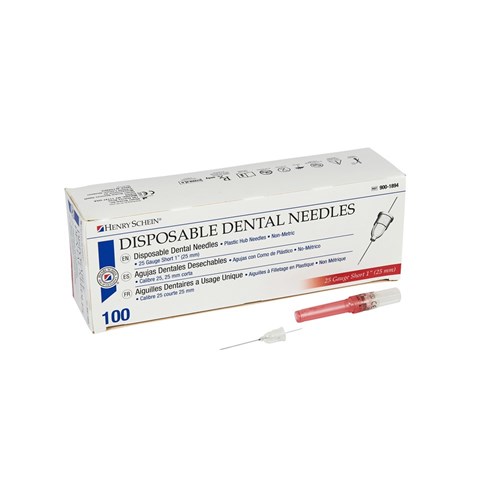 Henry Schein Standard Needles - 25 Gauge - Short 25mm -Red, 100-Pack