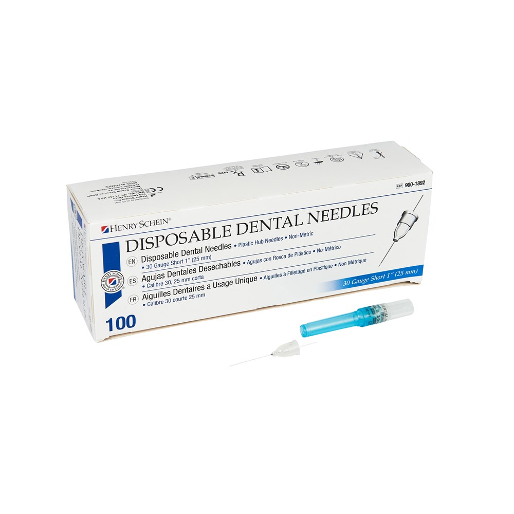 Henry Schein Standard Needles - 30 Gauge - Short 25mm - Blue, 100-Pack
