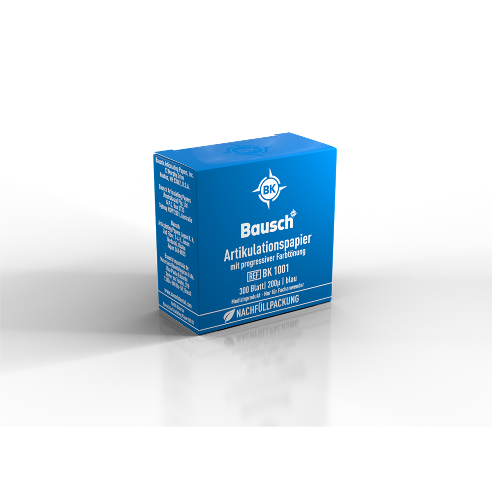 Bausch 200µ Articulating Paper with progressive color transfer can highlight any existing masticatory pressure interference clearly. Thinner test products which are available in thicknesses of up to 8µ (Arti-Fol®) should be used after adjusting and localizing the problem area.