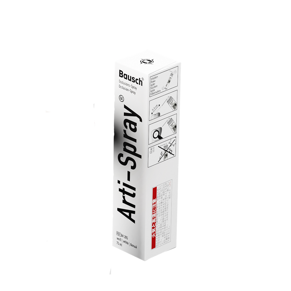 Arti-Spray® is a universal marking spray in four different colors for the dental laboratory for checking occlusal contacts as well as the accurate fitting of crowns, bridges, dentures and bite splints.