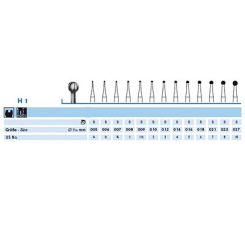 Tungsten Carbide Bur KOMET #H1-016 Round FG Extra Long x5