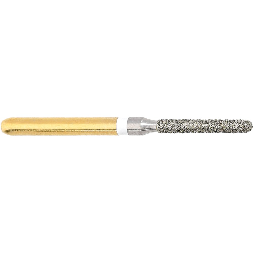 For Grinding of all-ceramic restorations. Friction grip with special reinforced coating to ensure permanent bonding of the diamond grains. Head Diameter size = 012 (1.2mm). Working Length of Diamond Grit Part = 8mm. Due to the high-torque forces in Crown-cutting the bur is recommended for use in Redbands (instead of lower-torque performing air Turbine Highspeeds) at the optimal speed of 160,000rpm. Friction-Grip