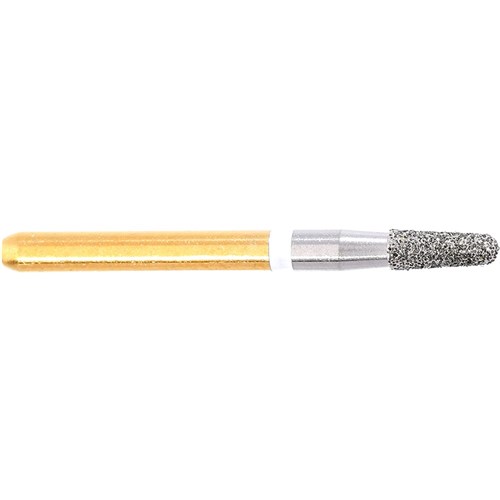 For Separating of all-ceramic crown & bridges. A speciliast & powerful friction grip crown cutter designed for all-ceramic restorations (incl. zirconium oxide/zirconia/e-max/lithium disilicate crowns & bridges), developed especially for this particularly difficult & high-torque task. Working Length of Diamond Grit Part = 4mm. With angle of 3 Degrees. Due to the high-torque forces in Crown-cutting the bur is recommended for use in Redbands (instead of lower-torque performing air Turbine Highspeeds) at the optimal speed of 160,000rpm. Head Diameter size = 016 (1.6mm).
