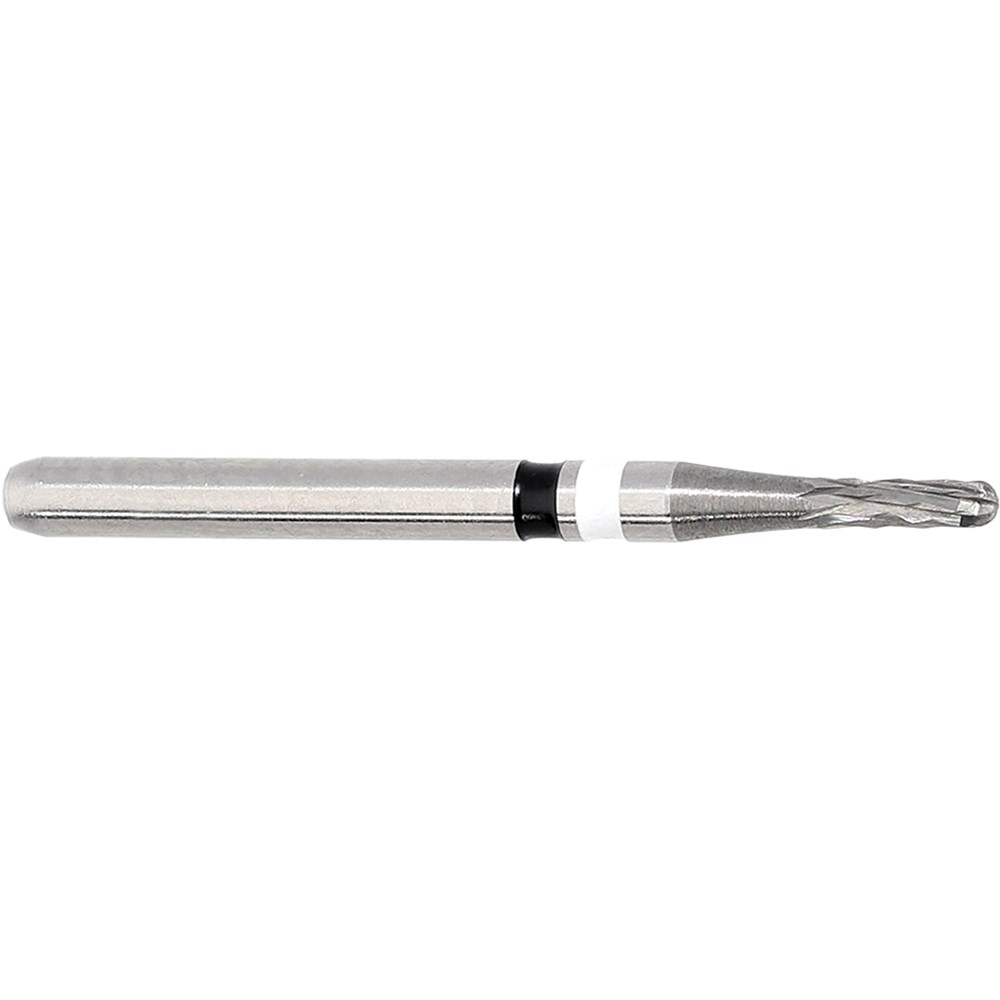 H4MCL cylinder rounded end, tungesten carbide, crown cutter for porcelain fused to metal crowns and metal crowns. FG 314 Shank, size 010 (1mm) diameter, 3.5mm working length. Apply crown remover at an angle of 45 degree.