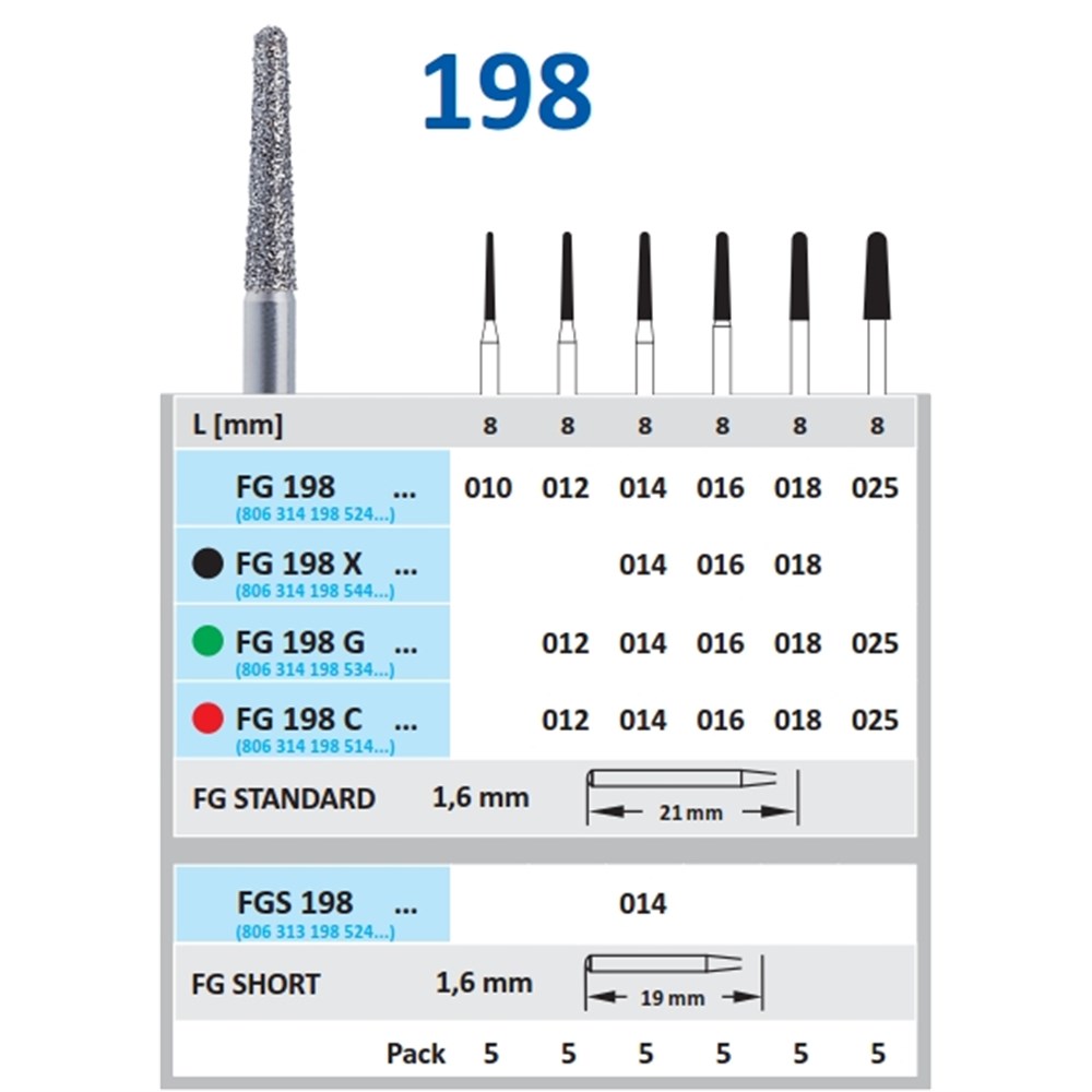 Horico Diamond Bur - 198G-012 - Round End Taper - Fine - Coarse - High Speed, Friction Grip (FG), 1-Pack