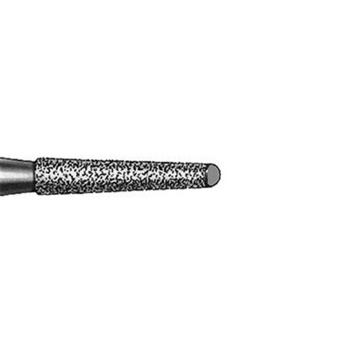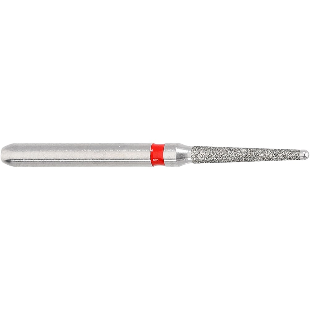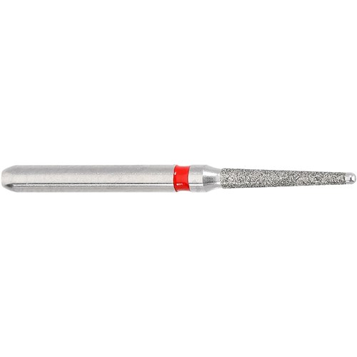 Safe end root canal preparation finishing bur. Tapered with round end, Fine grit, FG 314, 012 diameter, 8mm working length with 2 degree taper.