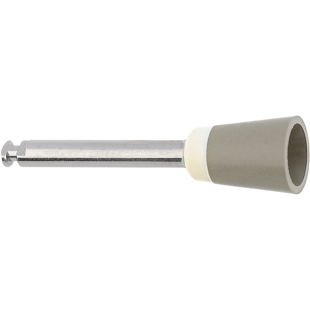 Polishers for ceramics interspersed with diamond grit. Use with spray coolant. Slow speed shank 204 size 060 cup with 10mm working length. 3-step polishing