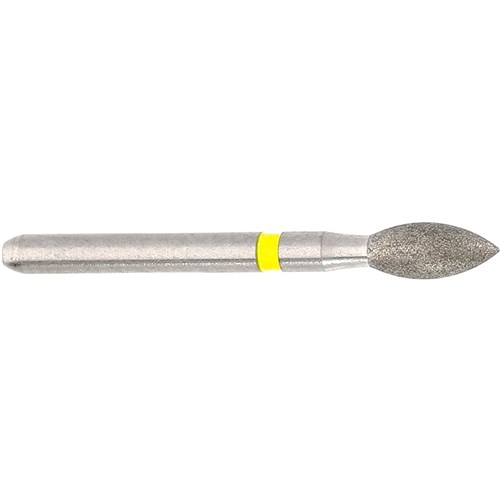 Extra-Fine Grit (25um) friction grip. Bud shape for Occlusal/Lingual Reduction. Head Diameter size = 023 (2.3mm). Working Length of Diamond Grit Part = 5mm. Recommended Max. Speed = 300,000rpm.