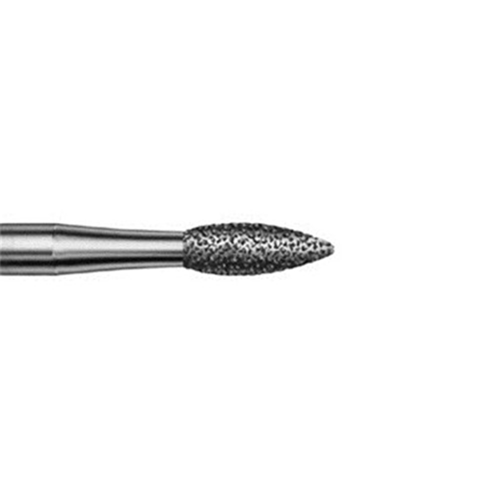 Fine grit bud long finishing diamond #8368L with FG 314 shank size 016 with 4.5mm working length for finishing occlusal / lingual reduction. Max recommended speed 450,000rpm