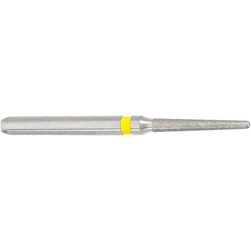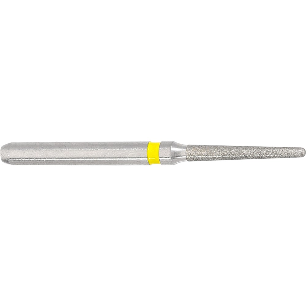 Tapered chamfer, round, extra fine grit, friction grip. Head diameter 012 (1.2mm) with 1.7 degree angle and 8mm working length. Matches H375R carbide finisher series.
