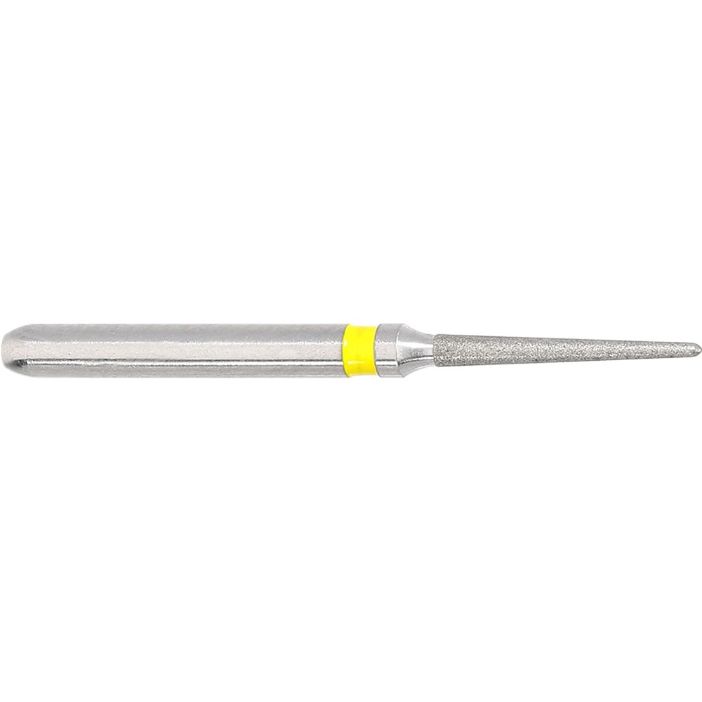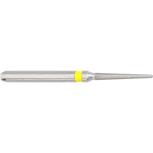 Pointed Extra Fine grit, RA shank. Head diameter 010 (1.0mm) with 2 degree angle and working length of 8mm. Maximum recommended speed 300,000 rpm.