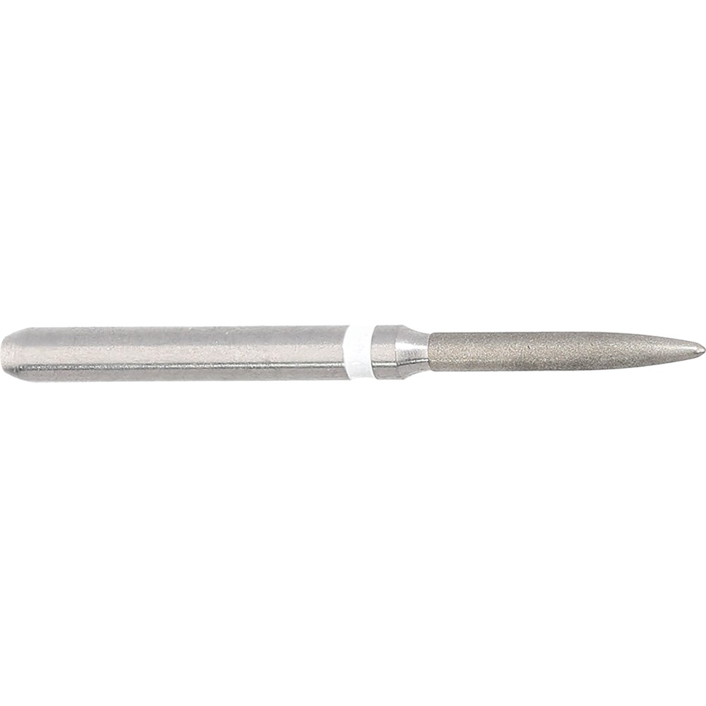 Flame, ultra fine grit, FG 314 diamond, 012 diameter with 8mm working length for finishing feather edge crown preparation or working on filling material. Matches H48L carbide finisher series.