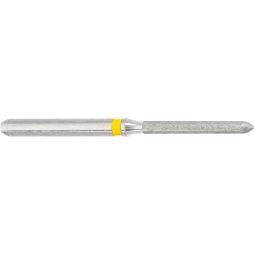Long parallel chamfer, torpedo extra fine grit, friction grip diamond. Head diameter 010 (1.0mm) and 10mm working length. Matches H284 carbide finisher series.