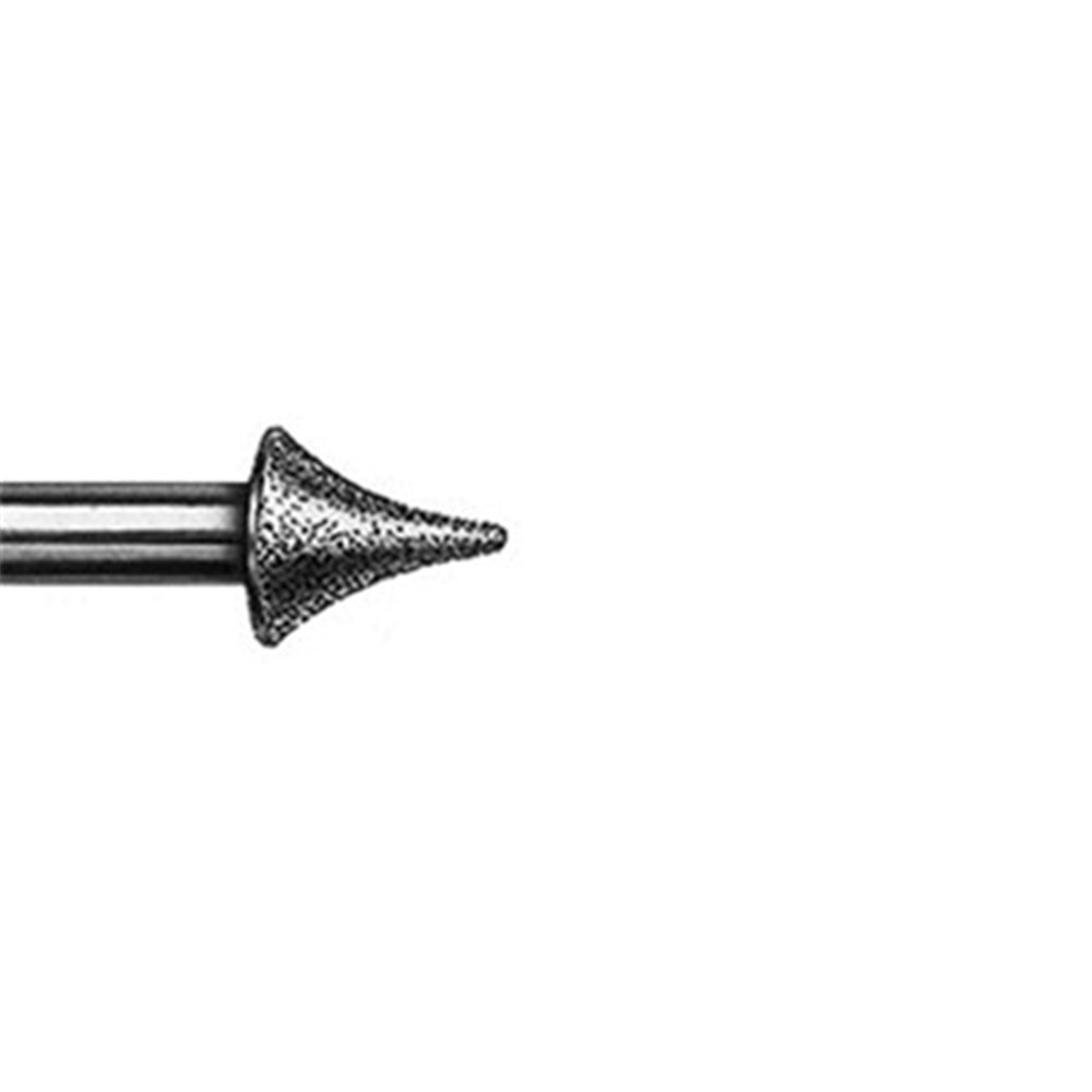 Pointed cone #8833 fine grit, FG 314 shank, finishing diamond for occlusal trimming. Size 031 with 3.6mm working length. Max recommended speed 140,000rpm.