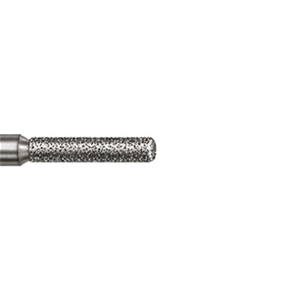 Short parallel shoulder with rounded edge for finishing cavity preparation. Fine grit, FG 314, 010 diameter, 6mm working length.