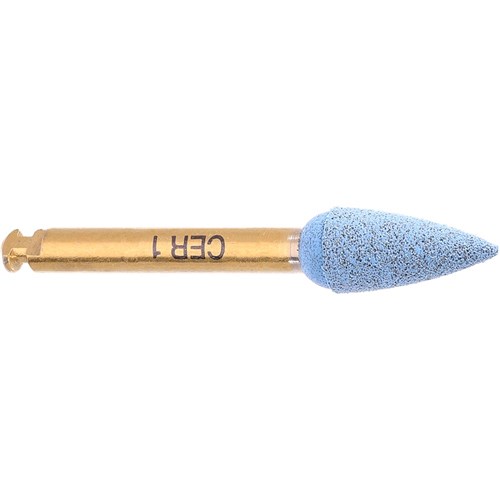 Blue diamond grit interspersed pre-polisher for high-performance ceramics e.g. zirconium oxide. RA 204, point, size 040 with 10.5mm working length.