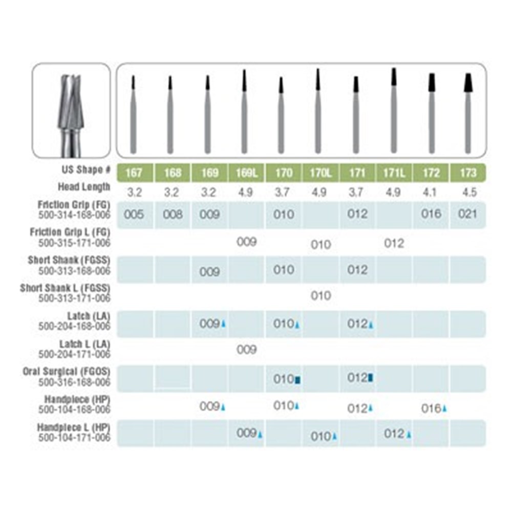 Kerr Jet Tungsten Carbide Bur - 168-008 - Tapered Fissure - High Speed, Friction Grip (FG), 5-Pack