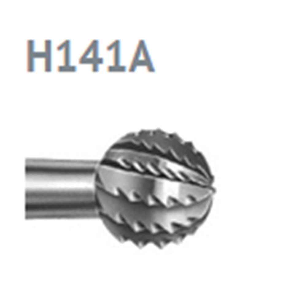 Oral Surgery tungsten carbide, round bone cutter H141A with special cutting design for smooth operation. RAL 205 long shank for right-angle handpiece, size 027 (2.7mm) diameter. US number 10SA.