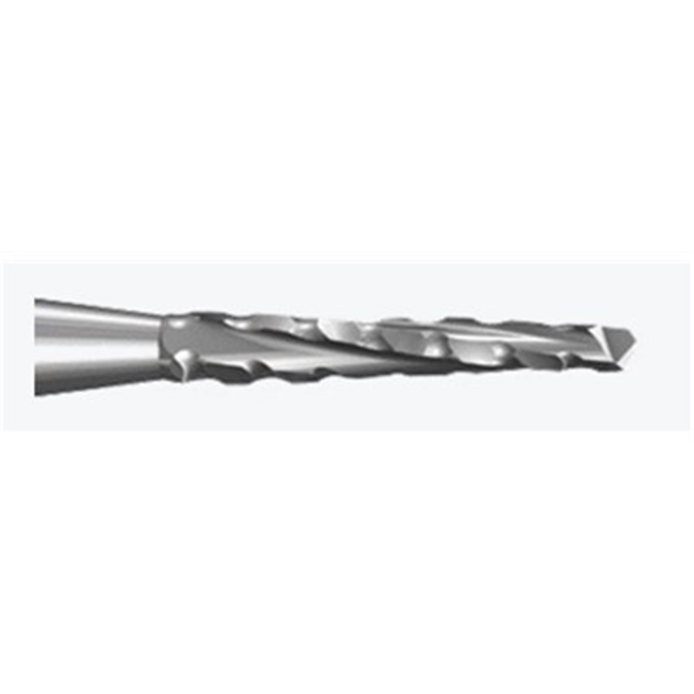Oral Surgery tungsten carbide, tapered bone cutter H162ST with maximum cutting performance thanks to special ST toothing. FG 314 shank high speed handpiece, size 016 (1.6mm) diameter with 9mm working length.