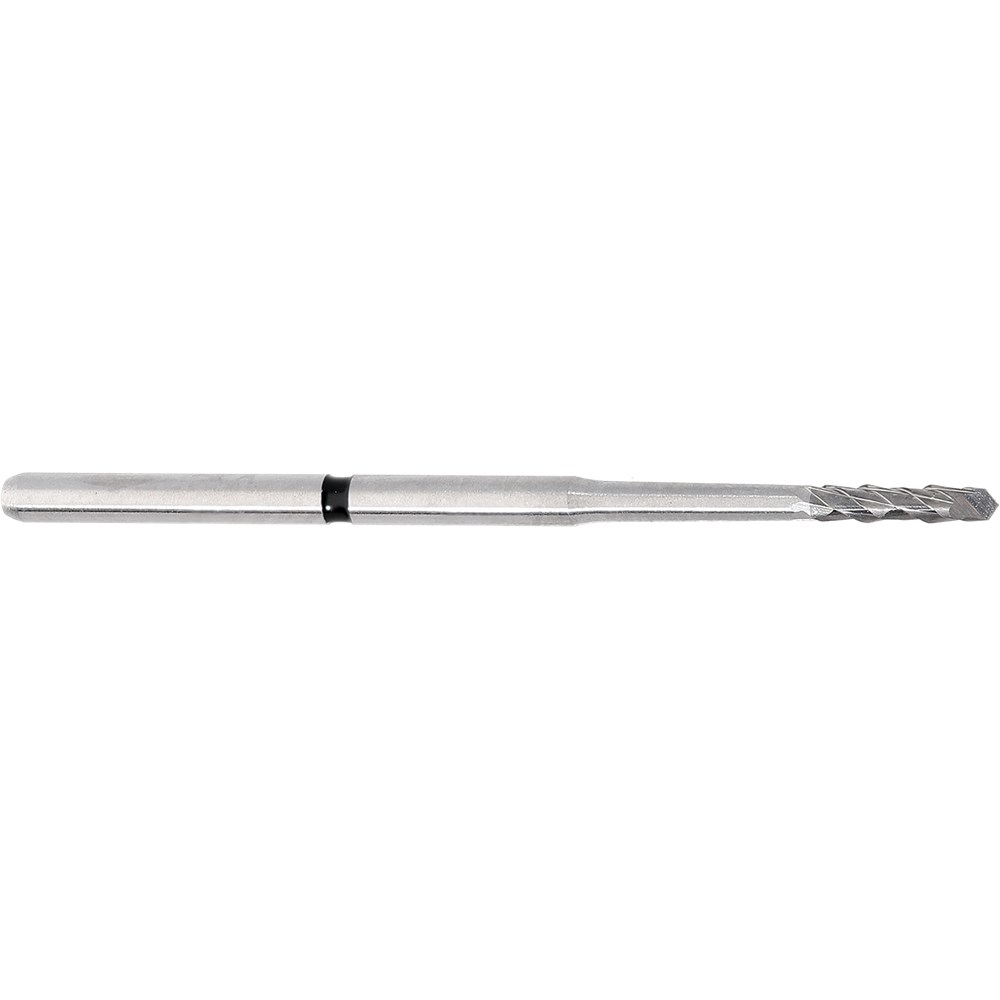 H255E cylindrical, oral surgery tungsten carbide bone cutter for efficient preparation of bone tissue and hard tooth substance.. FGXL 316 shank, size 012 (1.2mm diameter) and 6mm working length. Dental treatment today is expected to meet high standards: a minimally invasive procedure, maximal conservation of substance, and optimal use of effective instruments. The H255E cylindrical bone cutter meets these requirements in every respect. Thanks to its particularly small dimensions (1.2 mm diameter and 6 mm-long blade), the Komet H255E allows intuitive, tactile operation, and its cylindrical working portion permits maximal contact with the material to be cut. Bone or dentin can be quickly separated as part of a hemisection prior to extraction.