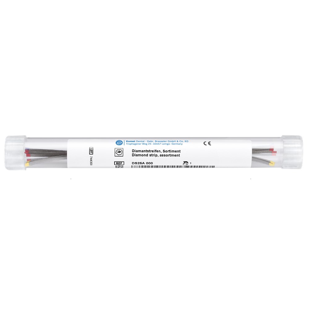 Autoclavable Diamond Coated finishing strips made of ultra-thin stainless fine steel. Flexible and coated on one side only for easy access to interproximal areas and protection of adjacent teeth.