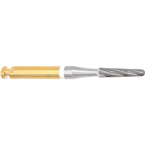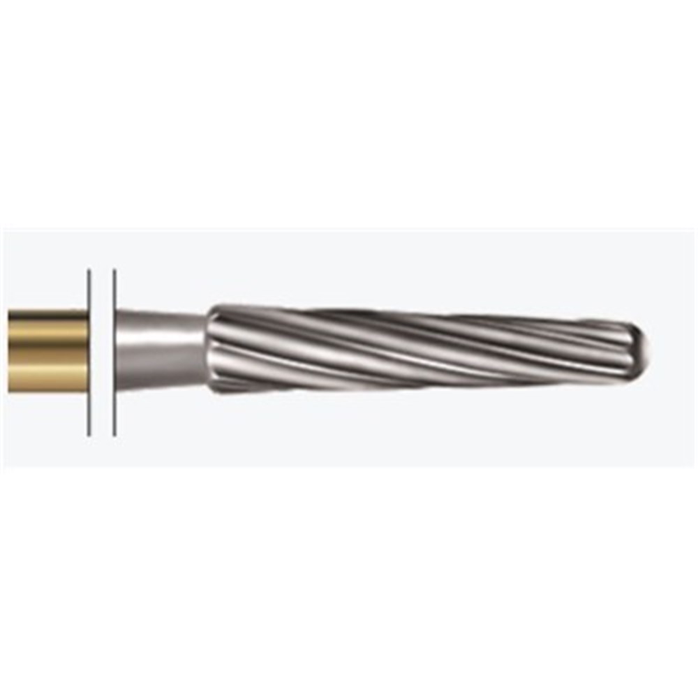 H22ALGK tungsten carbide, safe end, adhesive remover for labial surface. RA 204 shank for right angle handpiece, size 016, diameter 1.6mm with 8.3mm working length. After completion of an orthodontic treatment with brackets, the dentist has to remove adhesive residues quickly and without damaging sound tooth substance. We recommend these instruments to gently remove such adhesive residues. Safe end in order not to damage the gingiva, safety chamfer in order to avoid groove formation. For removal of adhesive residues without damaging the enamel.