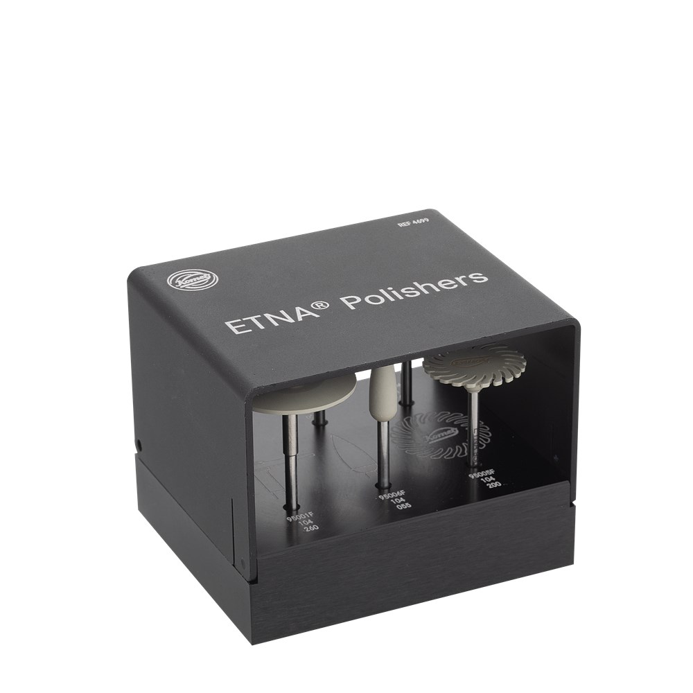 ETNA polishers complement the grinders perfectly as they are made of a softer material and are provided with a special diamond grit that ensures a smooth, effortless workflow. Delivering a high-gloss finish in just two steps, they also offer exceptional durability for consistent performance over a long period of time. Their versatility allows both grinders and polishers to adapt seamlessly to all ceramic shapes and sizes, including zirconia.