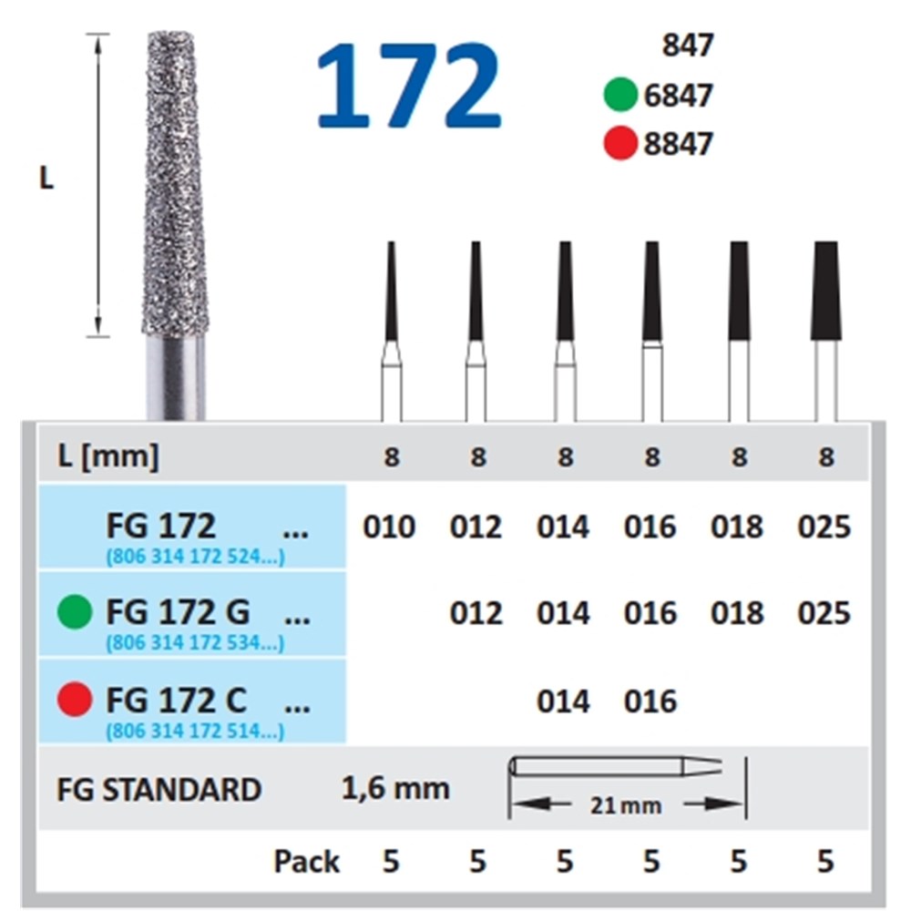 Horico Diamond Bur - 172-018 - Flat End Taper - High Speed, Friction Grip (FG), 1-Pack