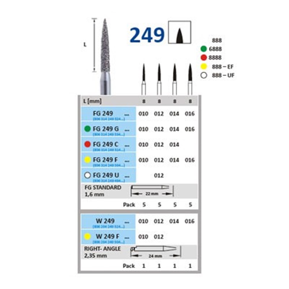 Horico Diamond Bur - 249-016 - Flame Pointed - Slow Speed, Right Angle (RA), 1-Pack