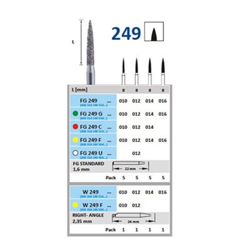 Horico Diamond Bur - 249F-012 - Flame Pointed - Extra Fine - High Speed, Friction Grip (FG), 1-Pack
