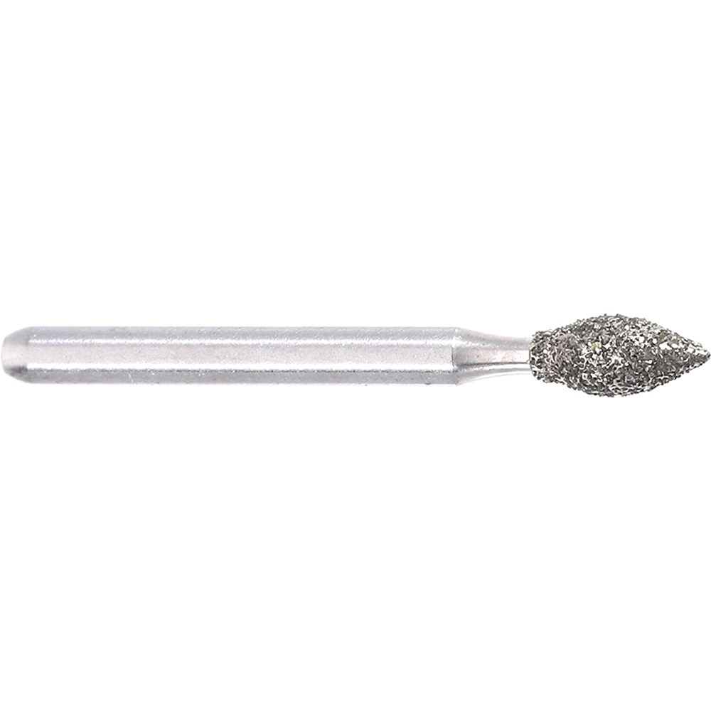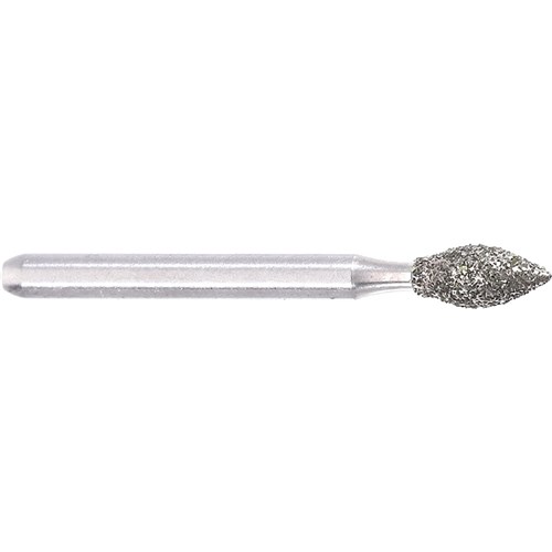 Medium Grit (107um) friction grip. Bud shape for Occlusal/Lingual Reduction. Head Diameter size = 023 (2.3mm). Working Length of Diamond Grit Part = 5mm. Recommended Max. Speed = 300,000rpm.