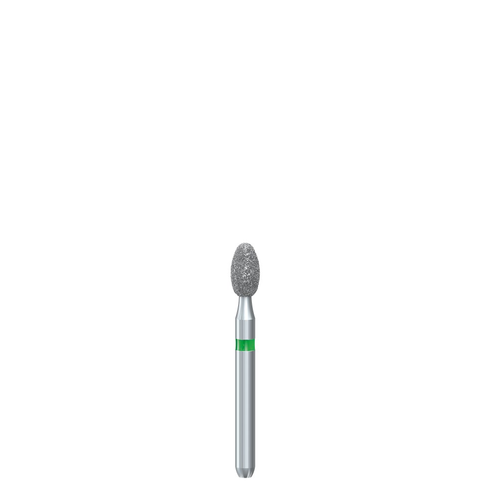 Egg occlusal / lingual reduction. Coarse Grit (151um) friction grip diamond. USA Reference number = OSD1. Head Diameter size = 023 (2.3mm). Working Length of Diamond Grit Part = 4.2mm. Recommended Max. Speed = 300,000rpm. Matches H379 Carbide finisher series.