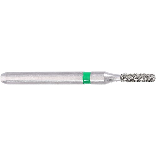 Coarse Grit (151um) cylinder short, rounded edge friction grip diamond for Cavity Preparation. Head Diameter size = 010 (1.0mm). Working Length 4mm.