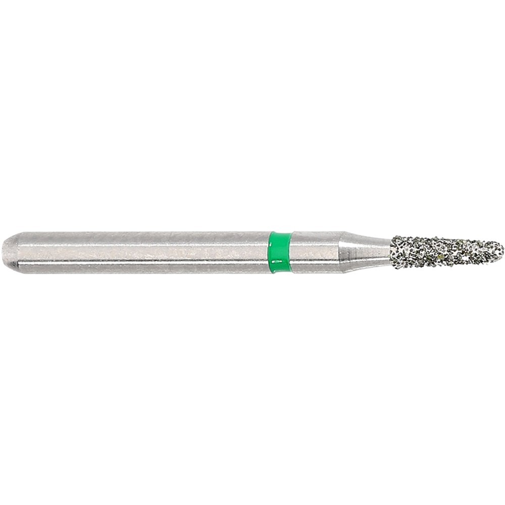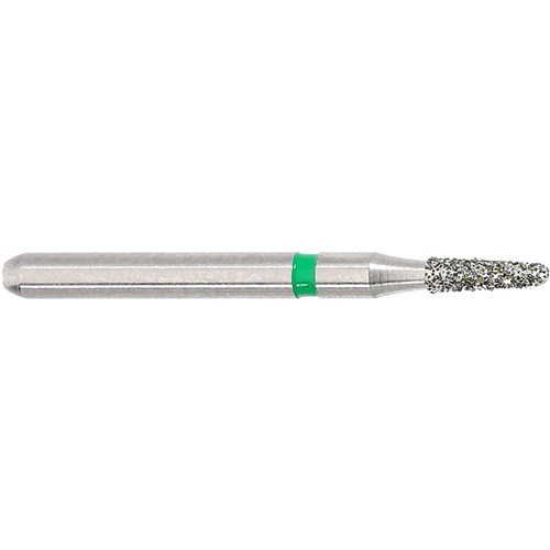 Tapered round, course grit, friction grip. Head diameter 012 (1.2mm) with 3 degree angle and working length 4mm