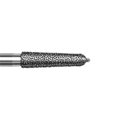 Crown Prep, tapered chamfer round with guide pin. Creates a cutting depth of 0.54mm. Head diameter 021 (2.1mm) with 2 degree angle and working length 8mm (plus 0.5mm tip)
