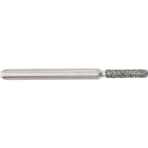 Short parallel shoulder with rounded edge, medium grit diamond, FG 314 shank size 012 with 6mm working length for cavity prep, crown prep. Max recommended speed 450,000rpm