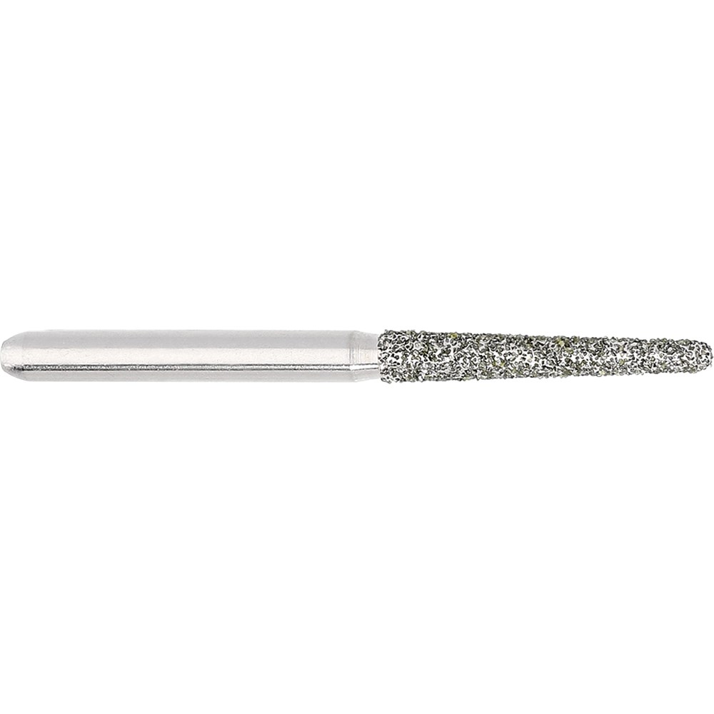 850 Tapered chamfer long, crown preparation bur, medium grit FG 314 diamond, 016 diameter, 10mm working length and 2 degree taper.