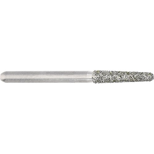 Tapered chamfer, round, medium grit, friction grip. Head diameter 018 (1.8mm) with 2 degree angle and 8mm working length. Matches H375R carbide finisher series.