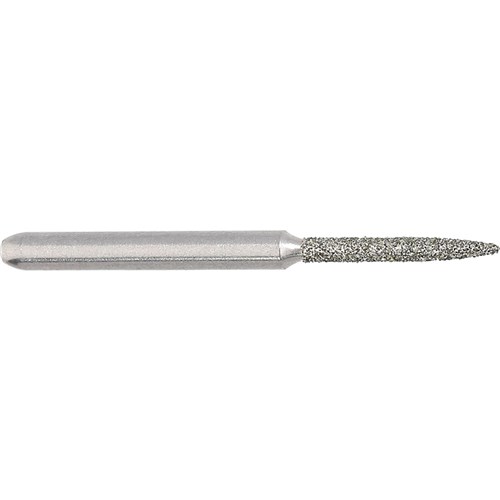 Flame, medium grit, FG 314 diamond, 010, 1.0mm diameter with 8mm working length for feather edge crown preparation, working on fillings. Matches H48L carbide finisher series.
