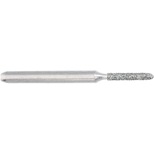 Short tapered chamfer, torpedo, medium grit, friction grip diamond. Head diameter 009 (0.9mm) and 6mm working length. Matches H282 carbide finisher series