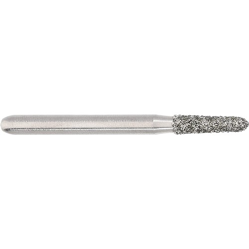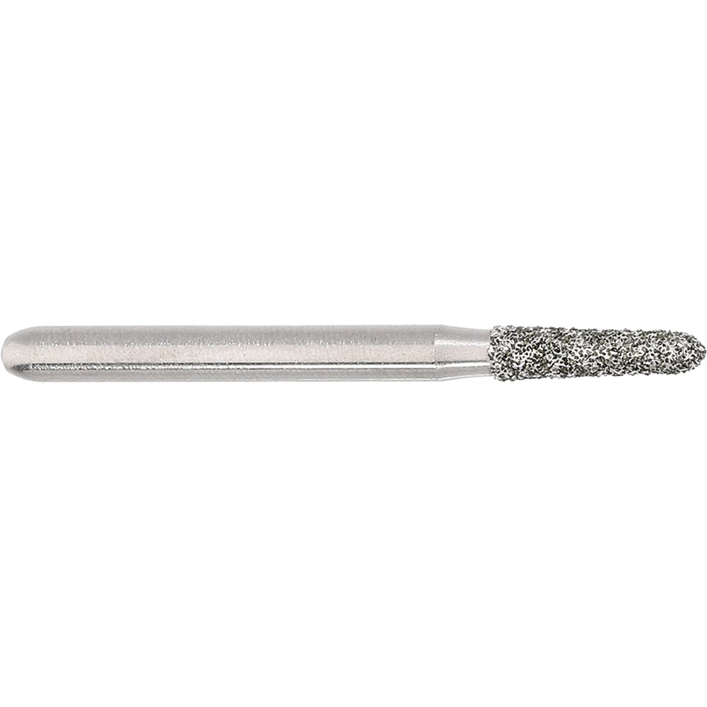 Short tapered chamfer, torpedo, medium, friction grip diamond. Head diameter 016 (1.6mm) with 2 degree angle and 6mm working length. Matches H282K carbide finisher series