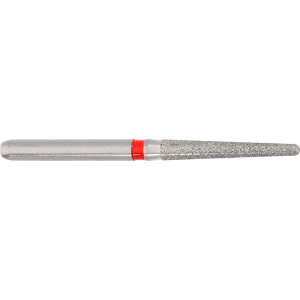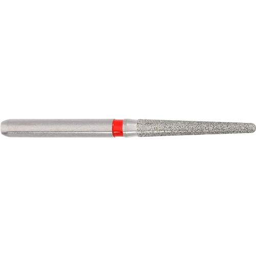 Tapered round long finishing bur for crown preparations. Fine grit, FG 314, 016 diameter 10mm working length with 2 degree taper.