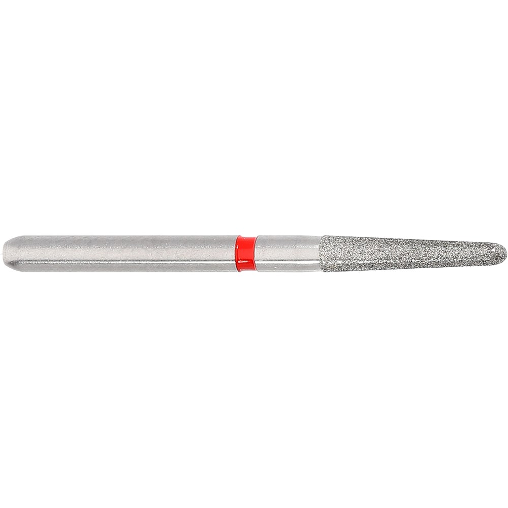 Tapered round fine grit, friction grip diamond size 012 (1.2mm) diameter with 8mm working length and 2 degree angle.