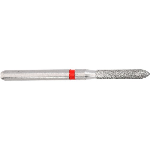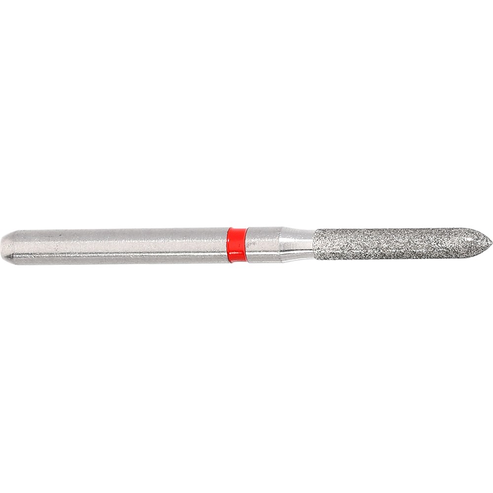 Parallel chamfer, torpedo, fine grit, friction grip FG 314 diamond finisher for crown preparation. Head diameter 014 (1.4mm) and 8mm working length. Matches H283 carbide finisher series