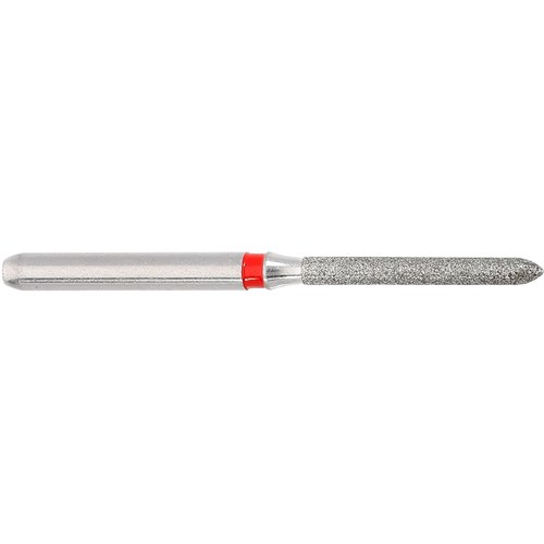 Long parallel chamfer, torpedo fine grit, friction grip diamond. Head diameter 014 (1.4mm) and 10mm working length.Matches H284 carbide finisher series.
