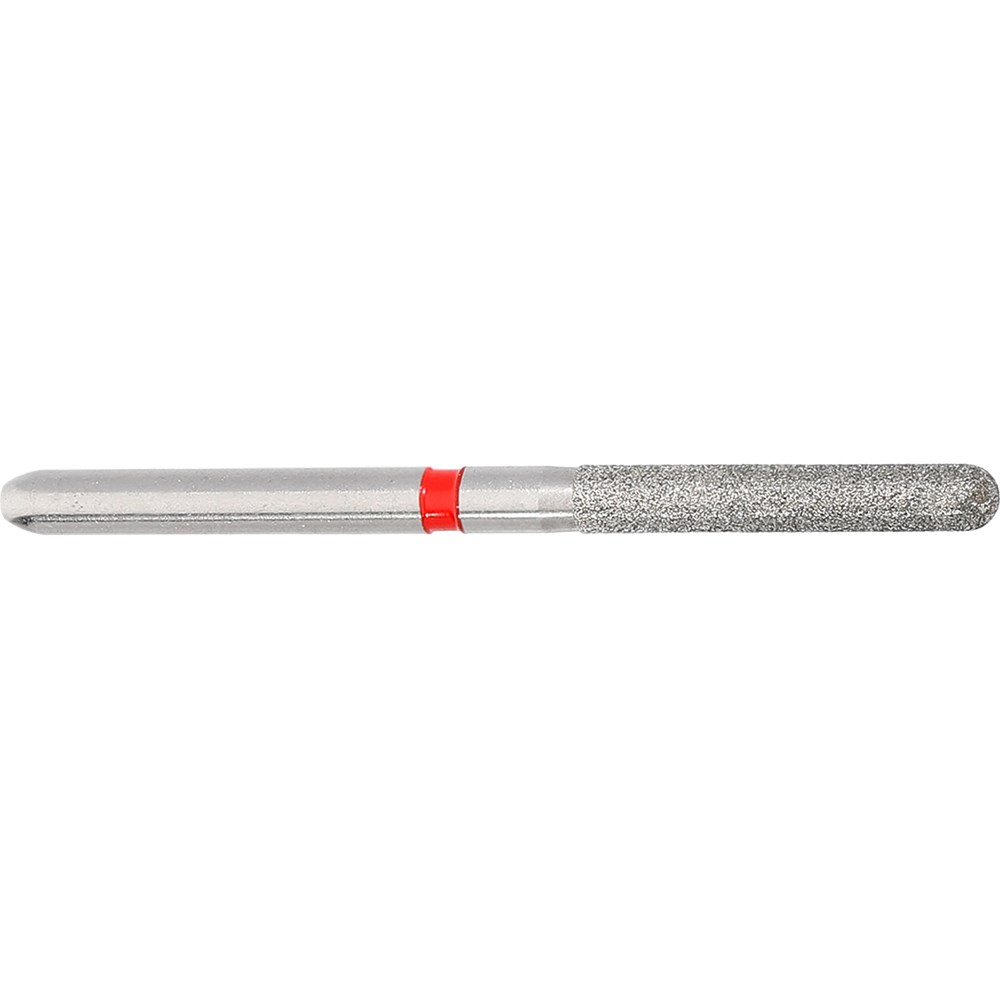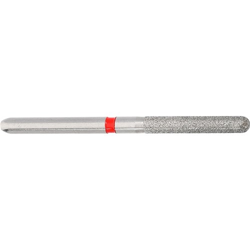 Fine grit, long parallel chamfer rounded edge, friction grip diamond used for finishing crown preparation. Size 016, with length 10.0mm.